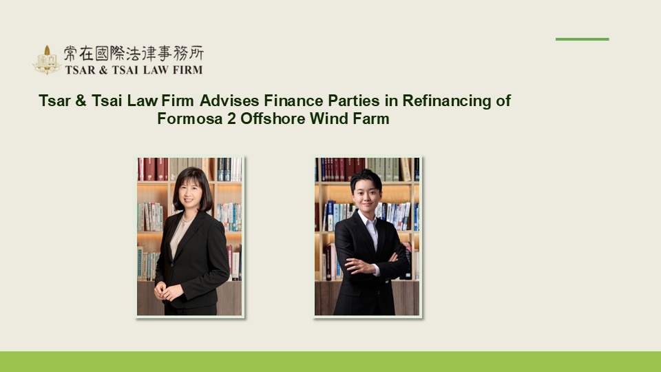 本專案融資為本所協助銀行團及離岸風電開發商在台灣完成的第八個離岸風電專案融資,再次肯定本所在再生能源及專案融資領域具領導地位。本所團隊成員包括林嘉慧合夥律師、彭于庭律師、林其叡律師與李岳軒律師。